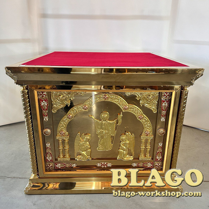 - Features: brass casting, icons under glass, overlays covered with enamel