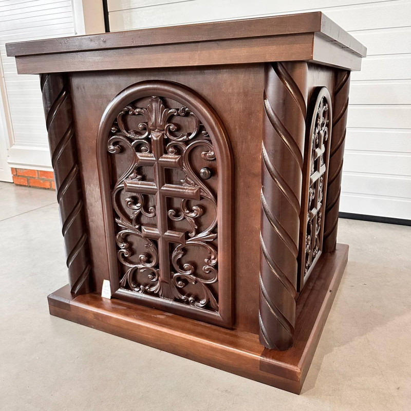 Throne vestments (riza) wooden with carvings, color - walnut, 100x100x105 cm