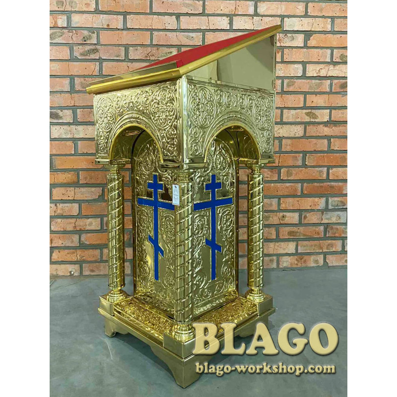 - Матеріал: ДСП, булат, латунь, оксамит, емаль