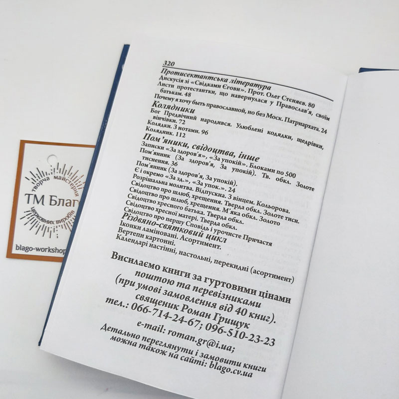 У нашій майстерні ТМ «Благо» є великій вибір Голгоф, Воскресінь, ікон, кіотів, престолів, жертовників, підсвічників, аналоїв, водосвятних чаш, окладів для Євангеліє, лампад, ладану, виробів з кераміки, пошивної та друкованої продукції.