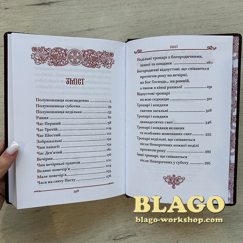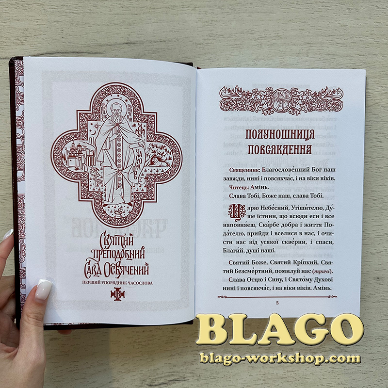 - Особливості: Часослов з благосовення Блаженнійшого Митрополита Київського і всієї України Епіфанія для вжитку в Православній Церкві України