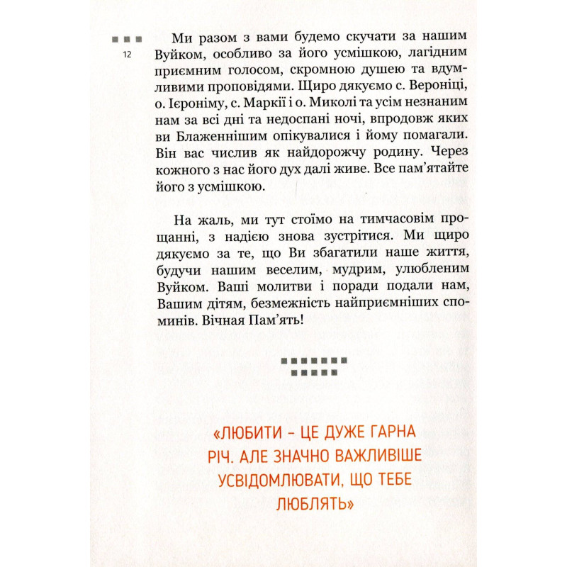 До книжки увійшли спогади про Блаженнішого Любомира Гузара, авторами яких є люди різного віку, професій, національностей і віровизнань. Відверто, зворушливо, смішно, влучно, без пафосу, простими словами про Людину великого серця — так коротко можна охарактеризувати ці щирі оповіді.