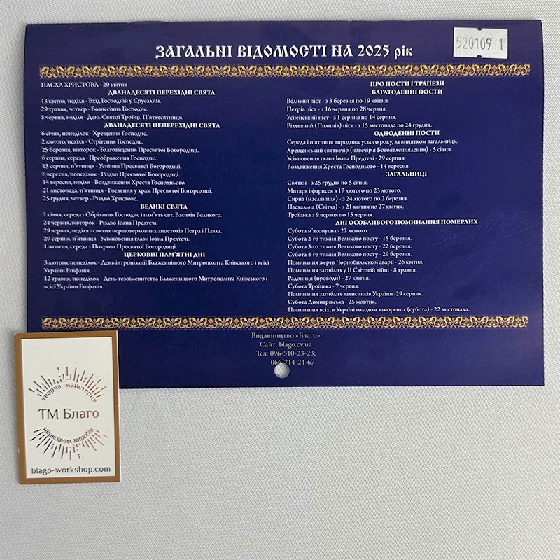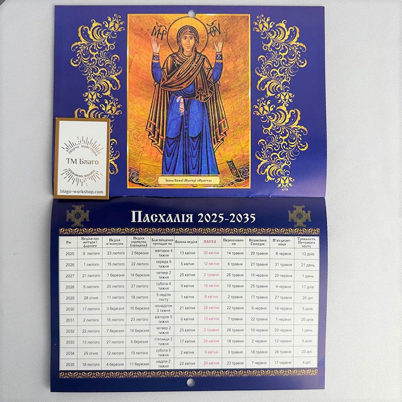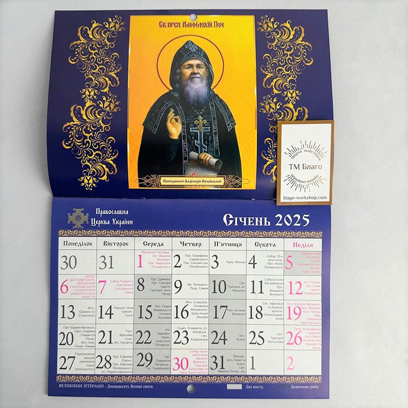Церковний перекидний календар на 2025 рік, новоюліанський, українською мовою, з м’якою палітуркою. Ідеальний для використання в домашніх умовах або в церковних громадах. Календар містить усі важливі церковні свята та дати, що відповідають новоюліанському календарю.
