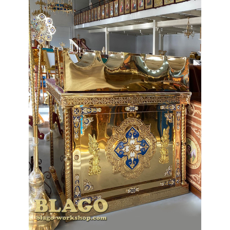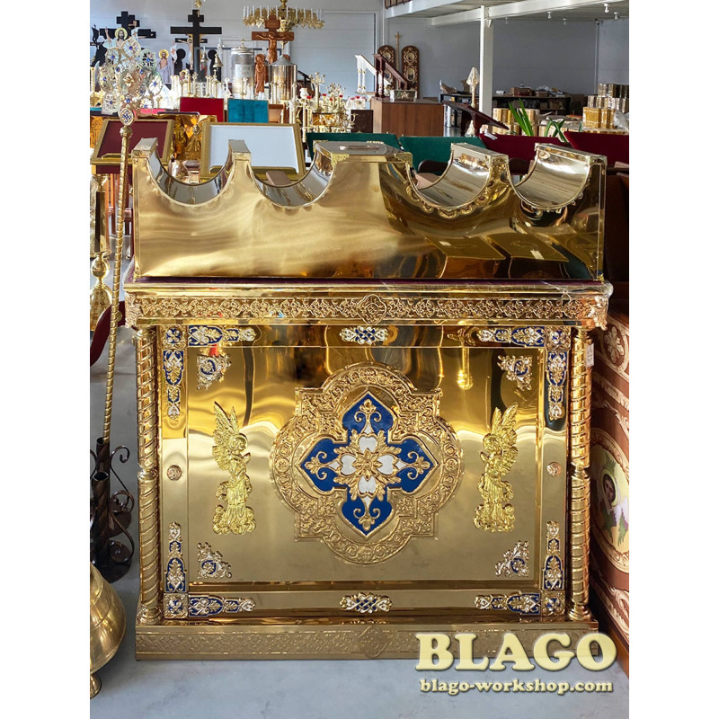 In our workshop TM "Blago" there is a large selection of Golgotha, icons, kiosks, thrones, altars, candlesticks, analogs, holy water bowls, salaries for the Gospel, lamps, incense, ceramics, ceramics, sewing and printed products.