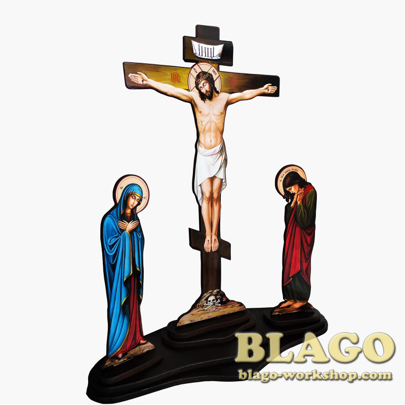 В нашей мастерской ТМ «Благо» есть большой выбор Голгоф, Воскресенья, иконы, киоты, престолы, жертвенники, подсвечники, аналои, водосвятные чаши, оклады для Евангелия, лампады, ладаны, изделия из керамики, пошивной и печатной продукции.