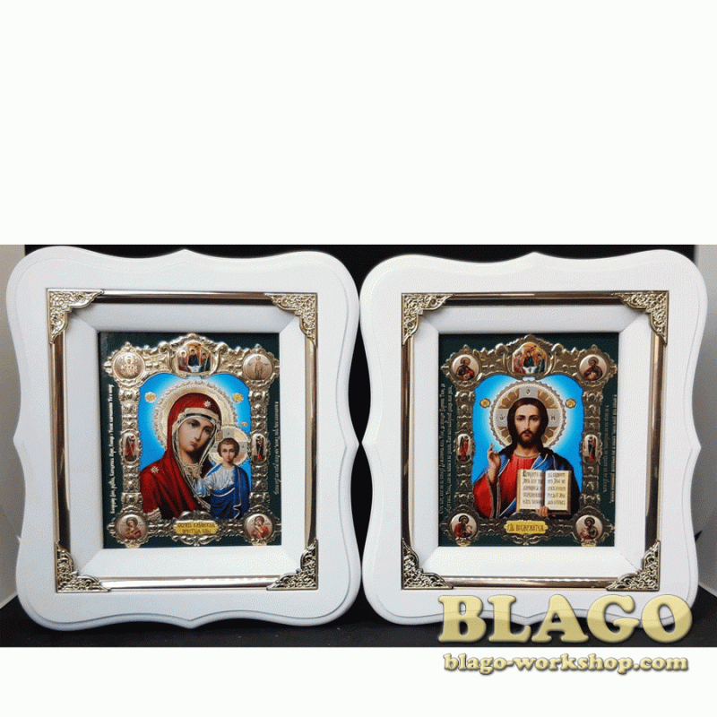 Pair Wedding Icons Our Lady Of Kazan And Christ The Savior Icons, 17х19 cm