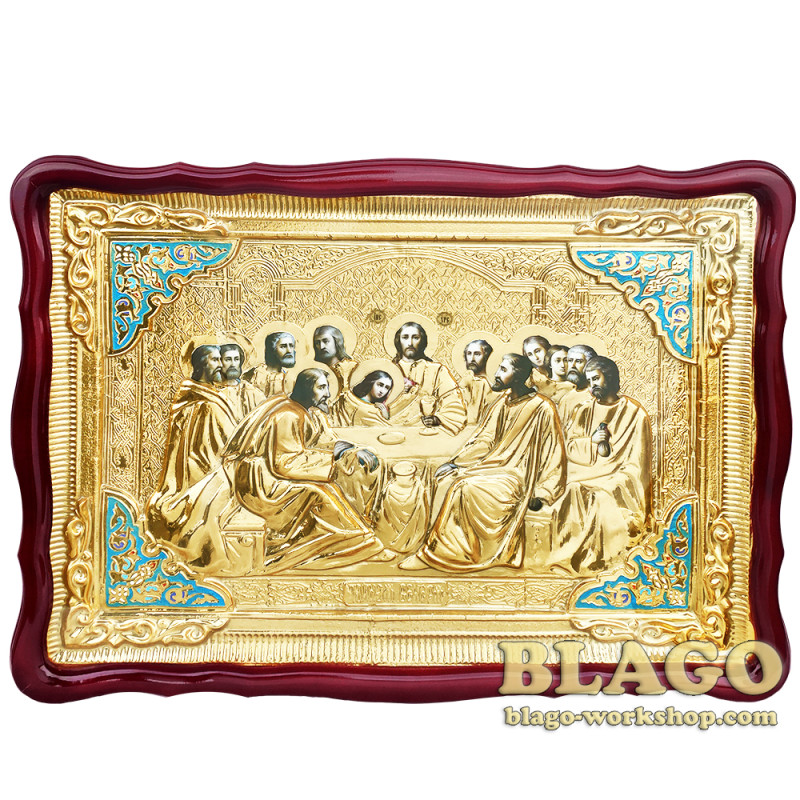 - Фон має рельєфний (об'ємний) візерунчастий малюнок, кути ікони розмальовані вручну емаллю