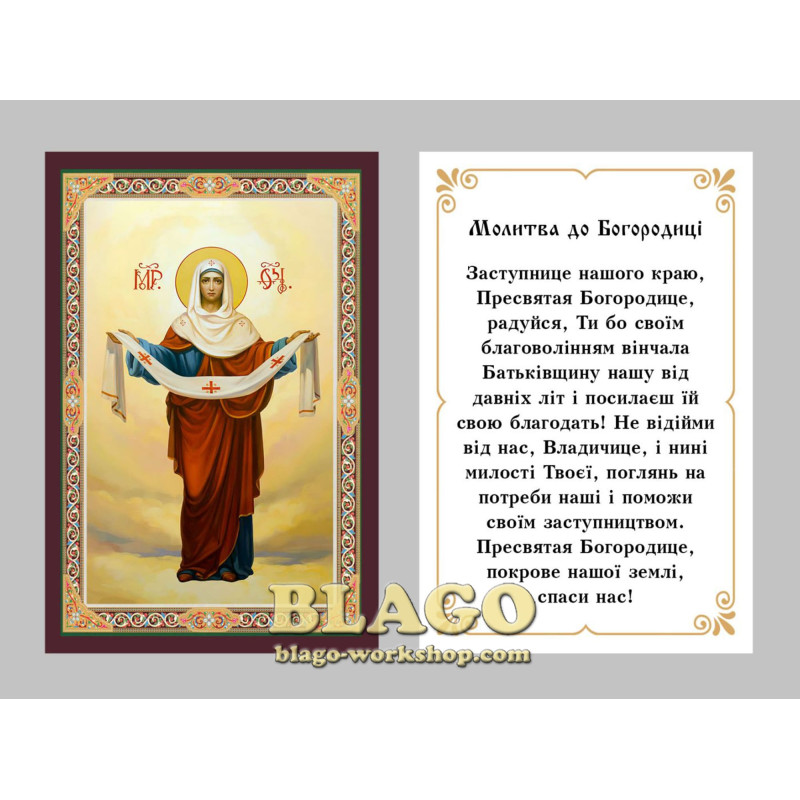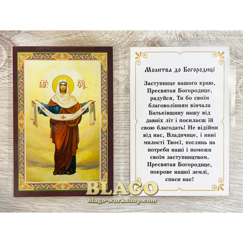 Икона ламинированная Божией Матери Покрова, украинский язык, 6х8 см