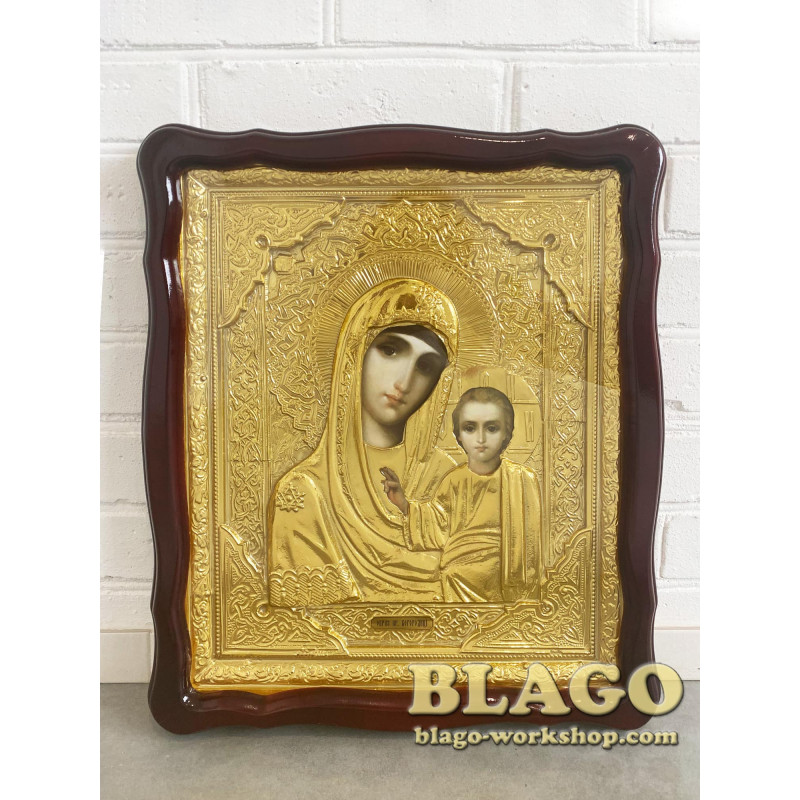 - Фігурна рамка (кіот) зроблена з вільхи, тонована лаком, колір червоного дерева