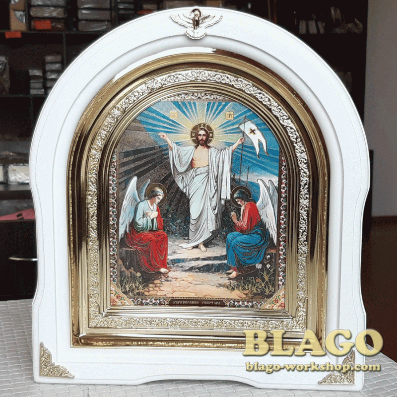 Ікона Воскресіння Христове арка у білій фігурній рамі, 26х29см