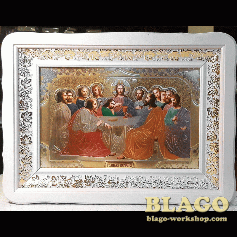 Ікона Таємна вечеря у білій фігурній рамі, 40×30 см