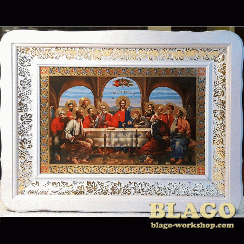 Ікона Таємна вечеря у білій фігурній рамі, 40×30 см