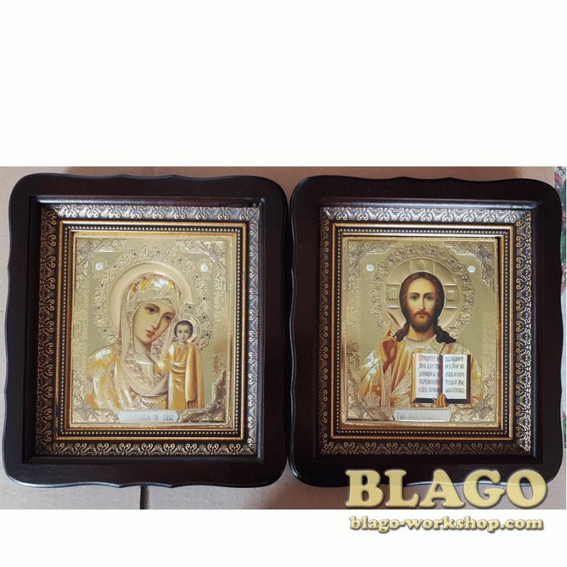 Ікони вінчальні Спаситель, Казанська у фігурній рамі, 23×26 см