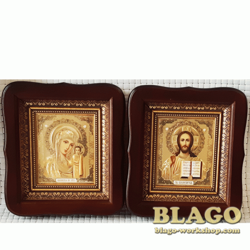 Ікони вінчальні Спаситель, Казанська у фігурній рамі, 18×20 см