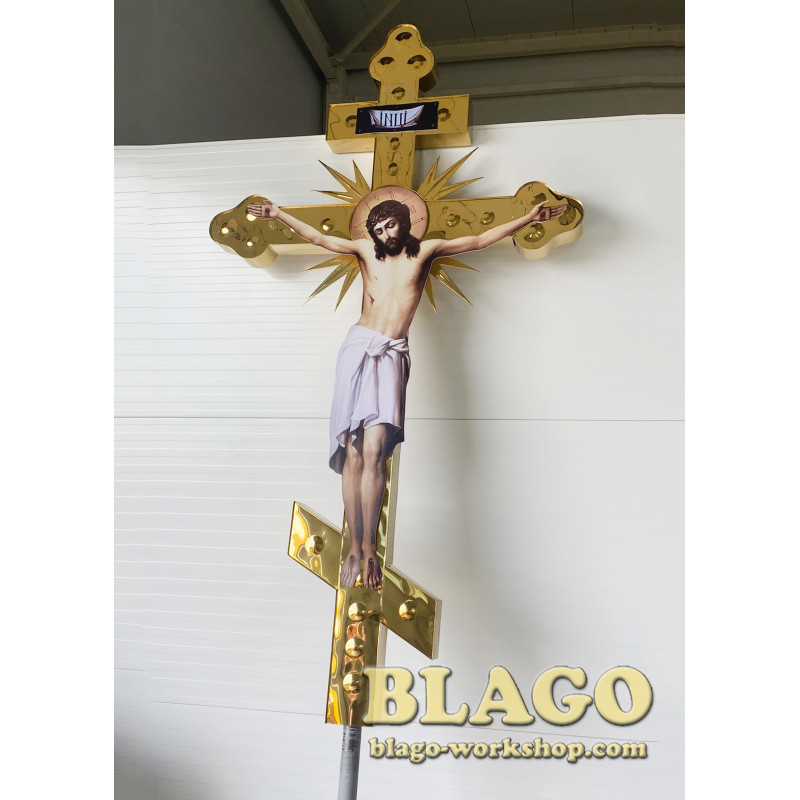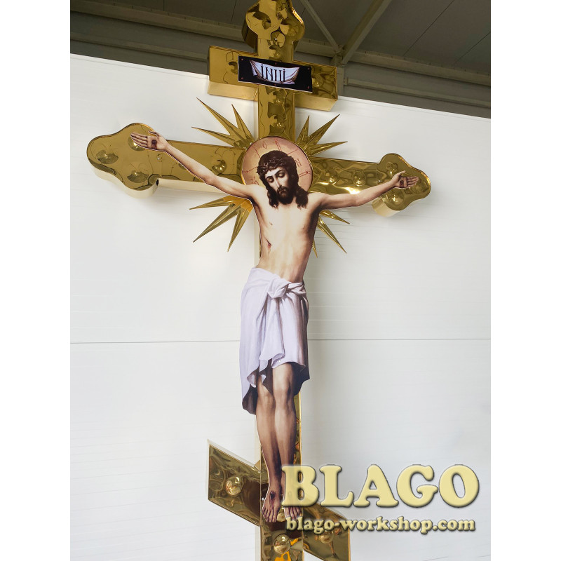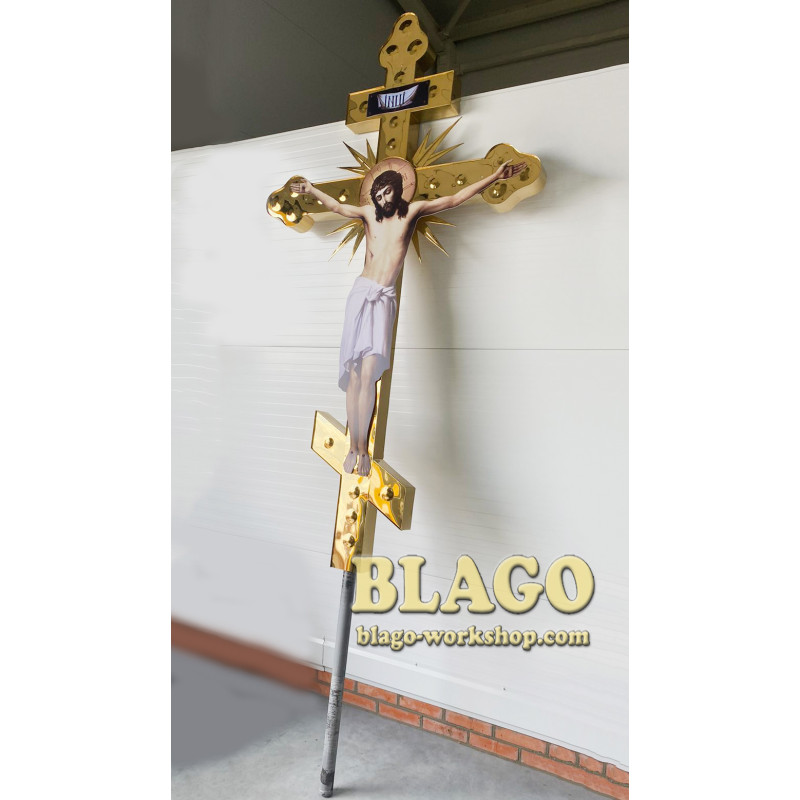 - Особливості: каркас - виготовлений з металевого профілю, який зверху обшивається булатом; зображення Ісуса Христа - виготовлено на композиті, який стійкий до зовнішніх атмосферних явищ;