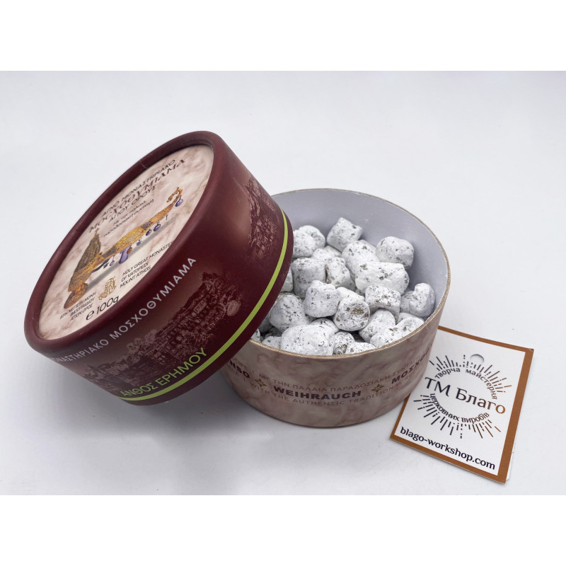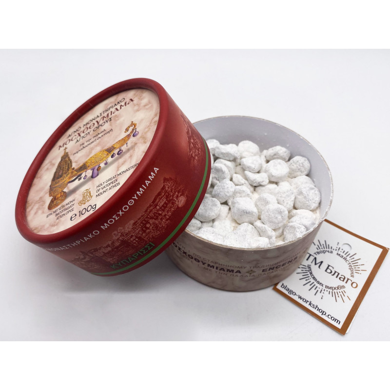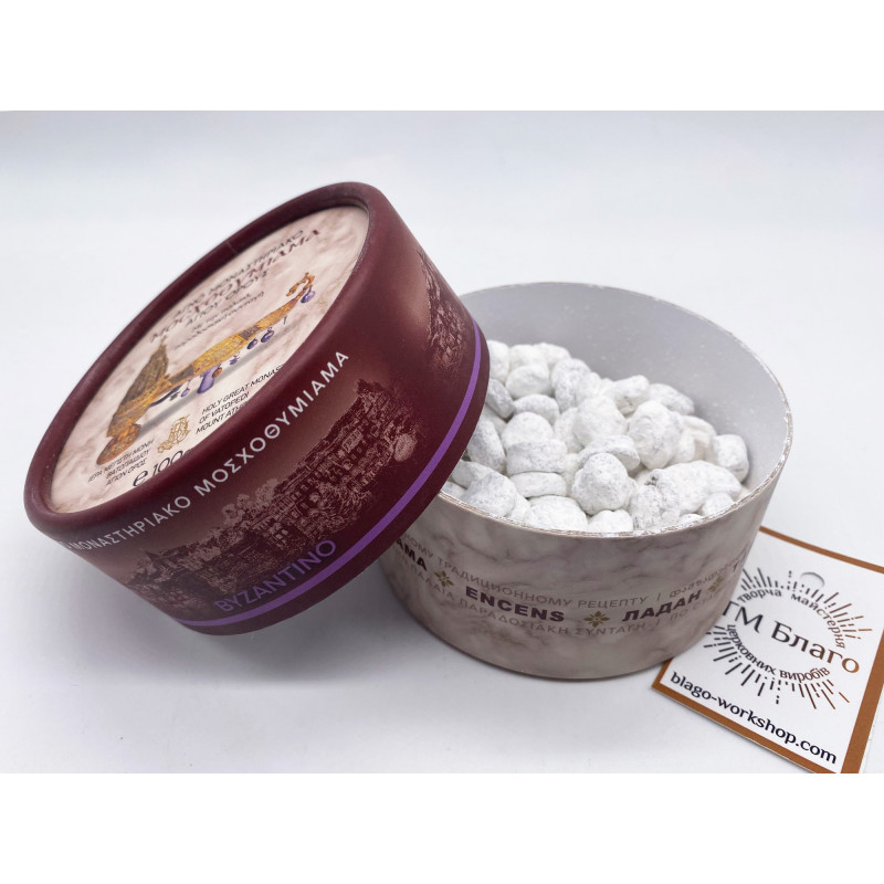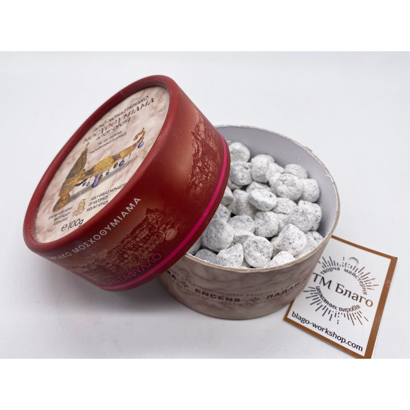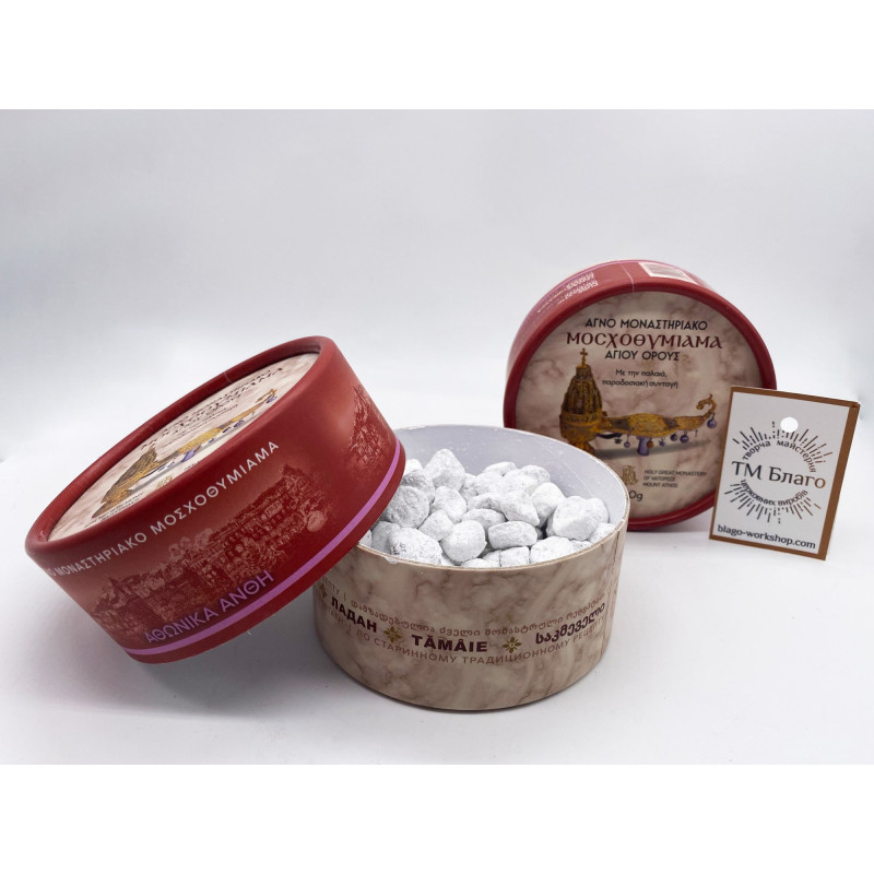 - Пахощі виготовлені монахами Великого Ватопедського монастиря на горі Афон за традиційним автентичним рецептом.
