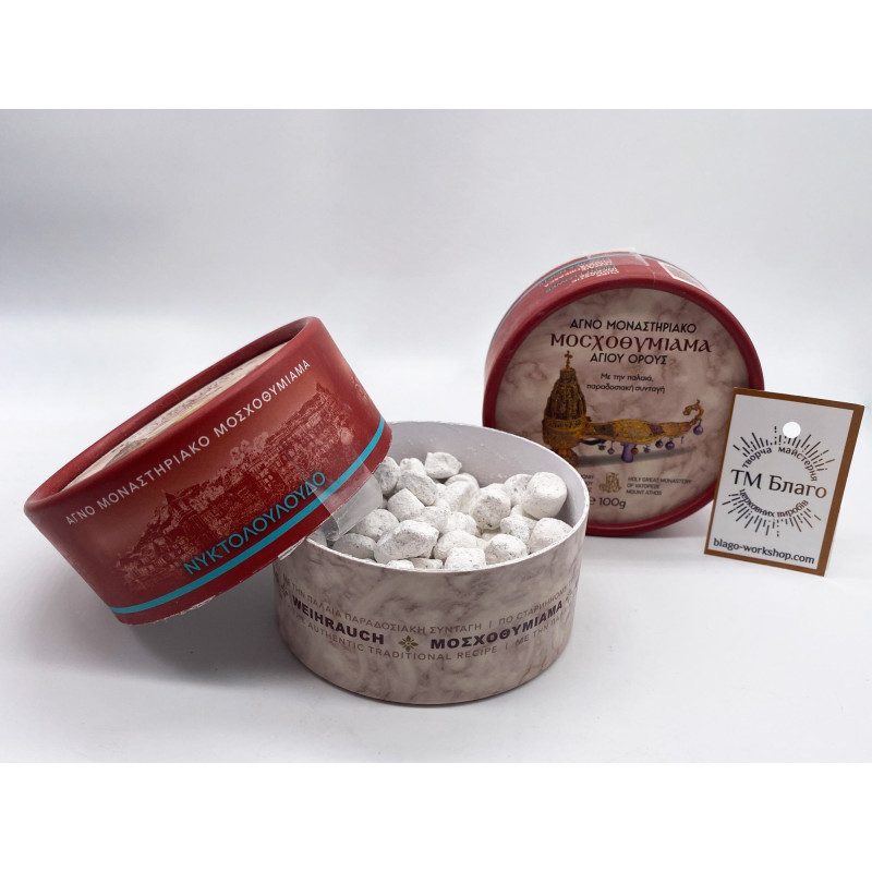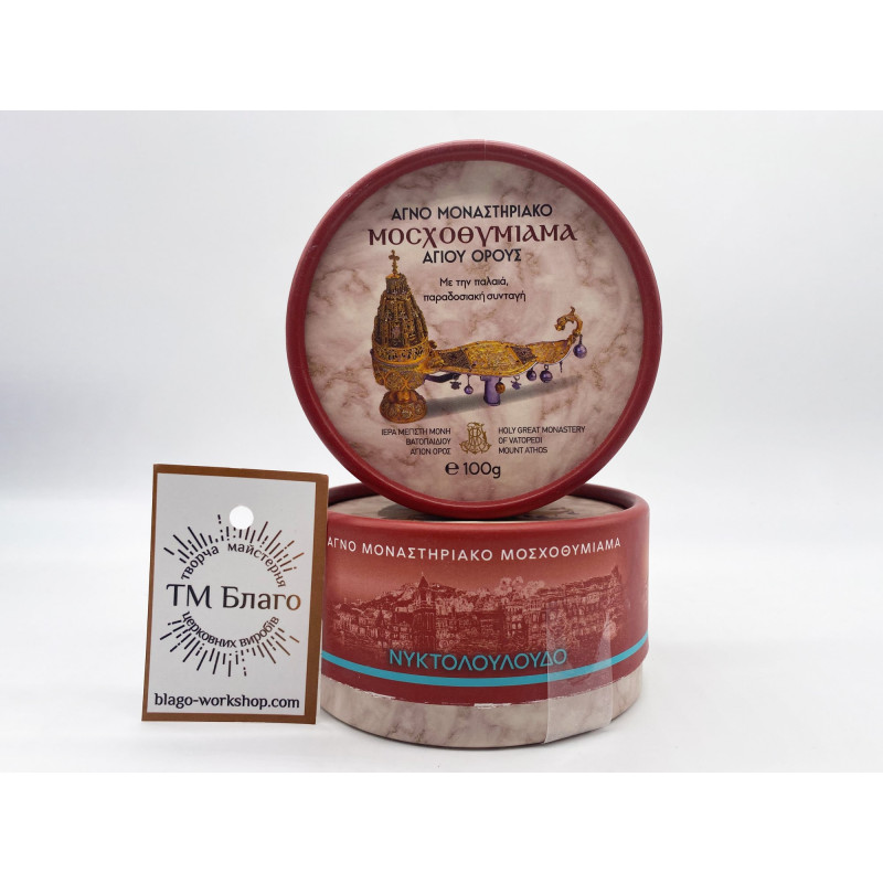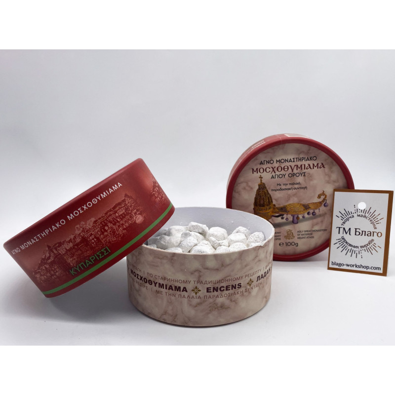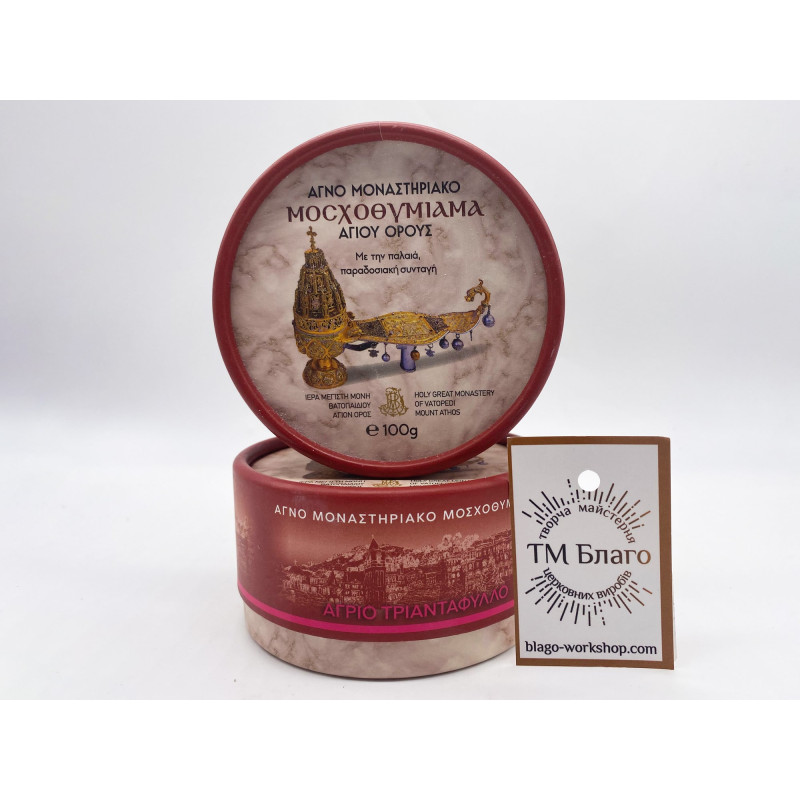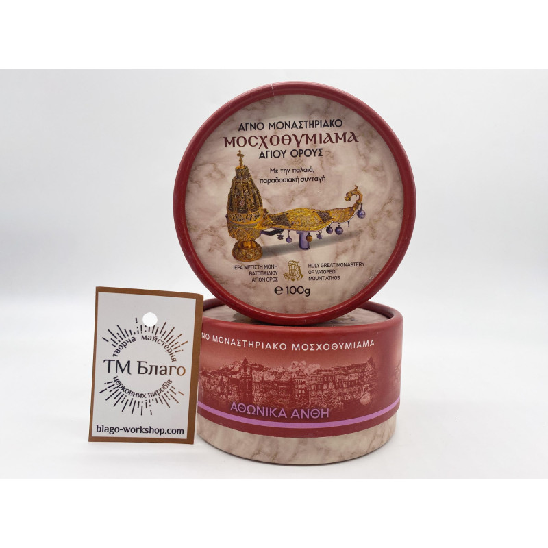 - Пахощі виготовлені монахами Великого Ватопедського монастиря на горі Афон за традиційним автентичним рецептом.