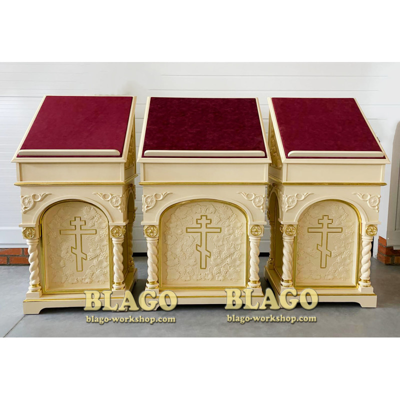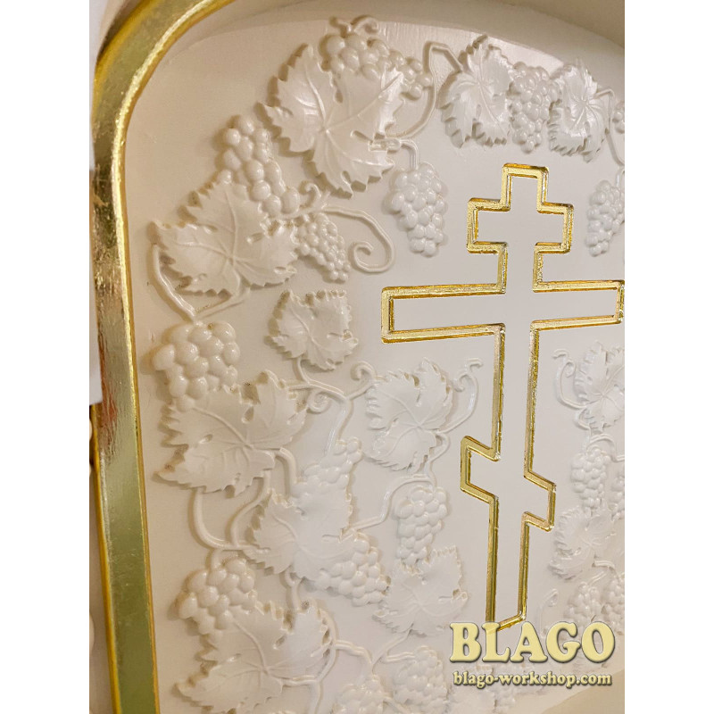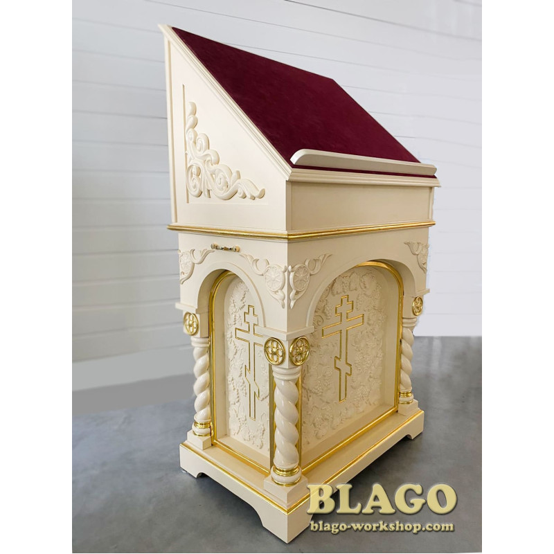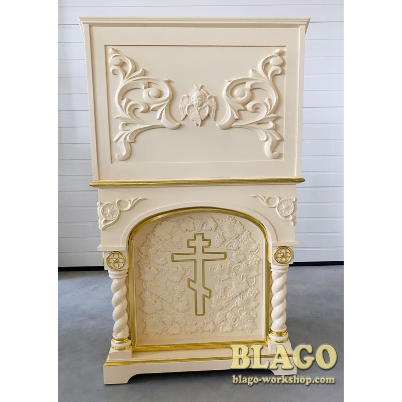 In our workshop of TM "Blago" there is a large selection of analogues, icons, kiots, thrones, altars, candlesticks, analogues, holy water bowls, covers for the Gospel, lamps, incense, ceramic products, sewing and printed products.