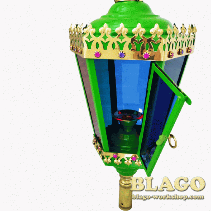 Ліхтар пасхальний зелений, кольорове скло, 25х25х71 см