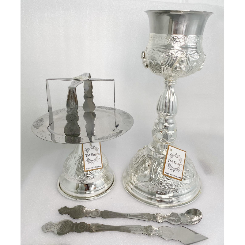 У нашій майстерні ТМ «Благо» є великій вибір євхаристичний наборів, ікон, кіотів, престолів, жертовників, підсвічників, аналоїв, водосвятних чаш, окладів для Євангеліє, лампад, ладану, виробів з кераміки, пошивної та друкованої продукції.