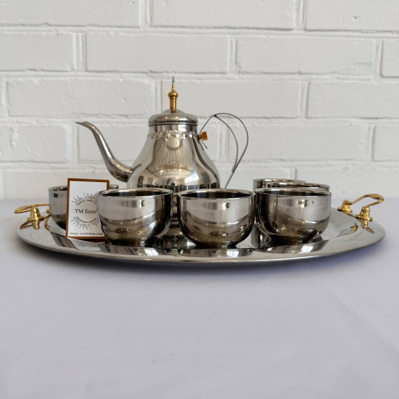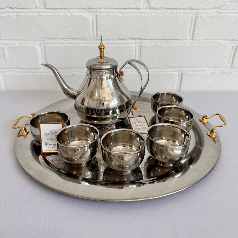 - Комплектація: чайник, 6 чаш для запивки, таця