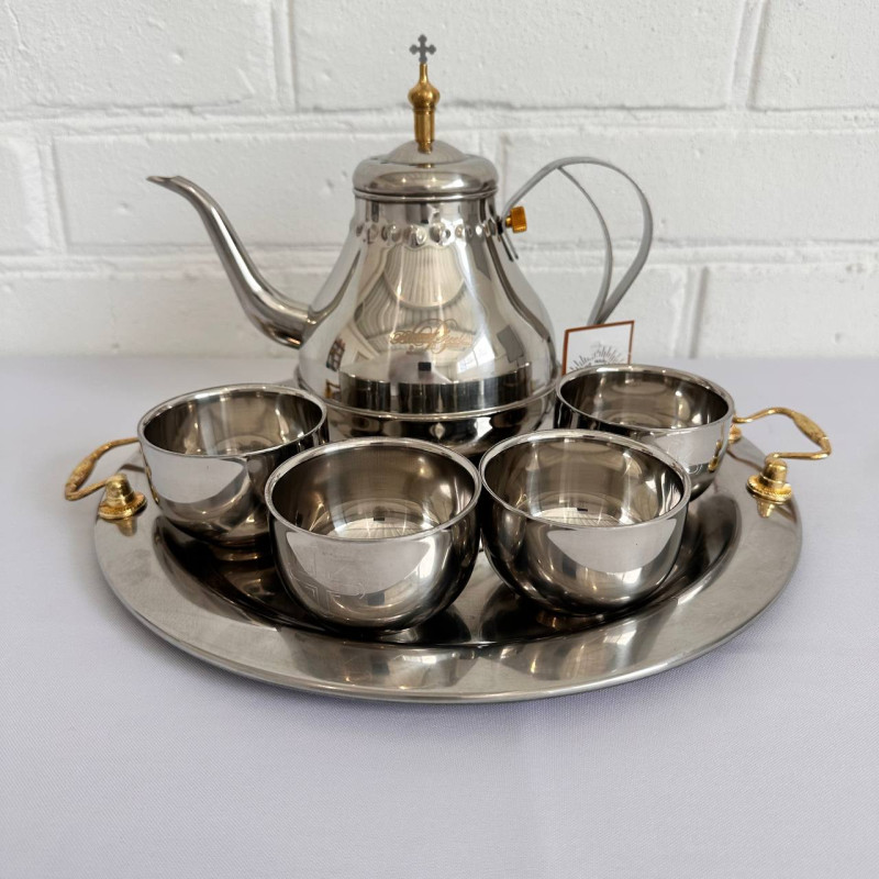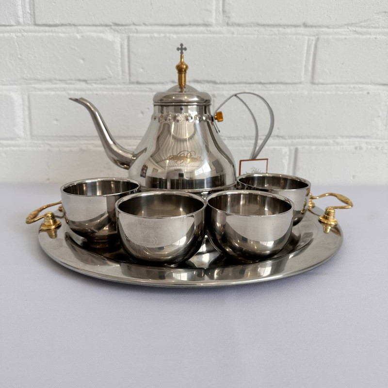 - Комплектація: чайник, 4 чаші для запивки, таця