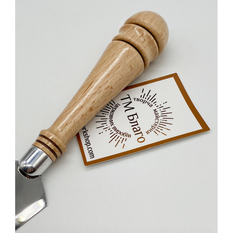 - Матеріал: ручка - дерево (бук), лезо - нержавіюча сталь