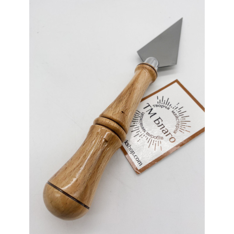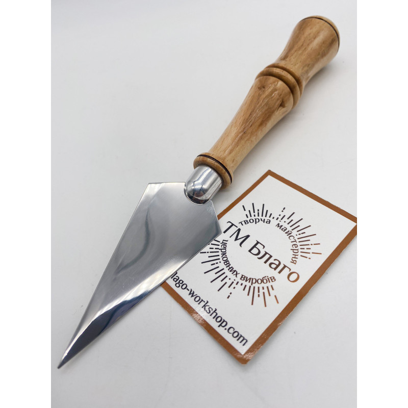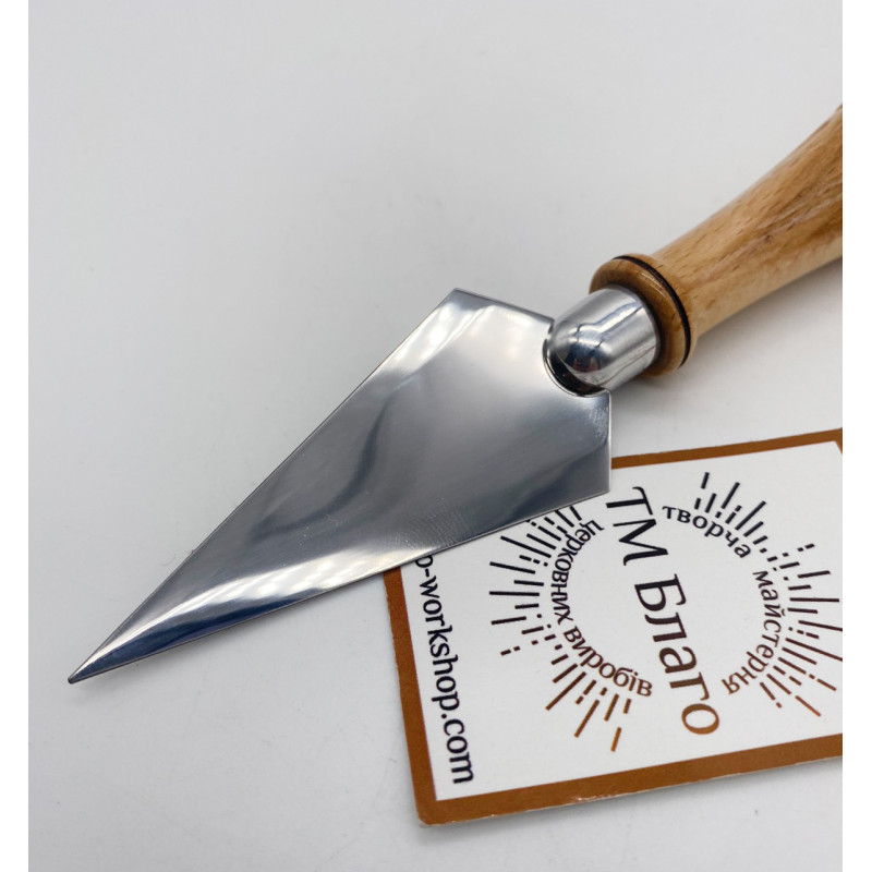 - Матеріал: ручка - дерево (бук), лезо - нержавіюча сталь