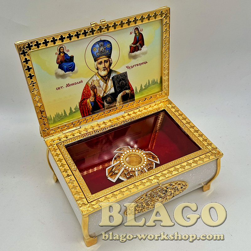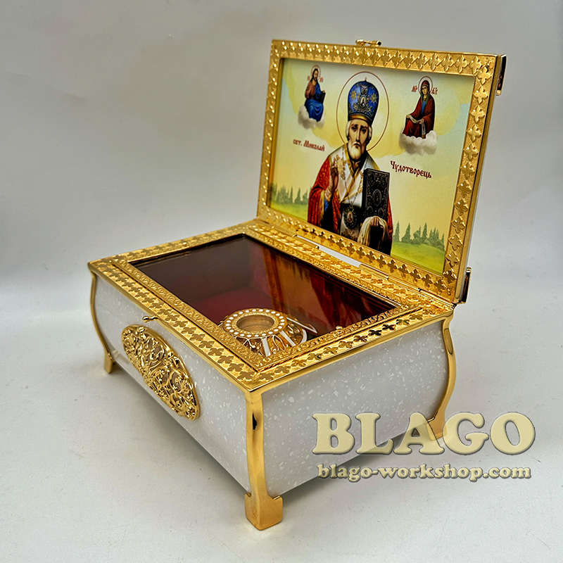 - Особливості: ковчег з іконою Святого Миколая Чудотворця