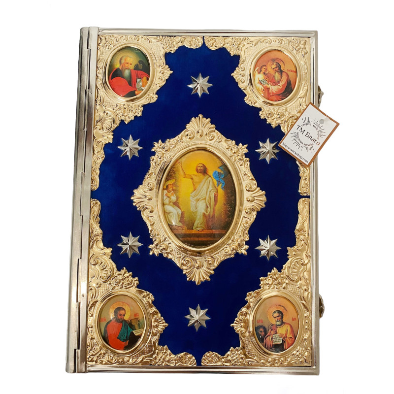 Здесь Вы сможете найти Евангелие разных размеров с позолочением, посеребрением, никелированием, с использованием бархата, или же в кожаном окладе.