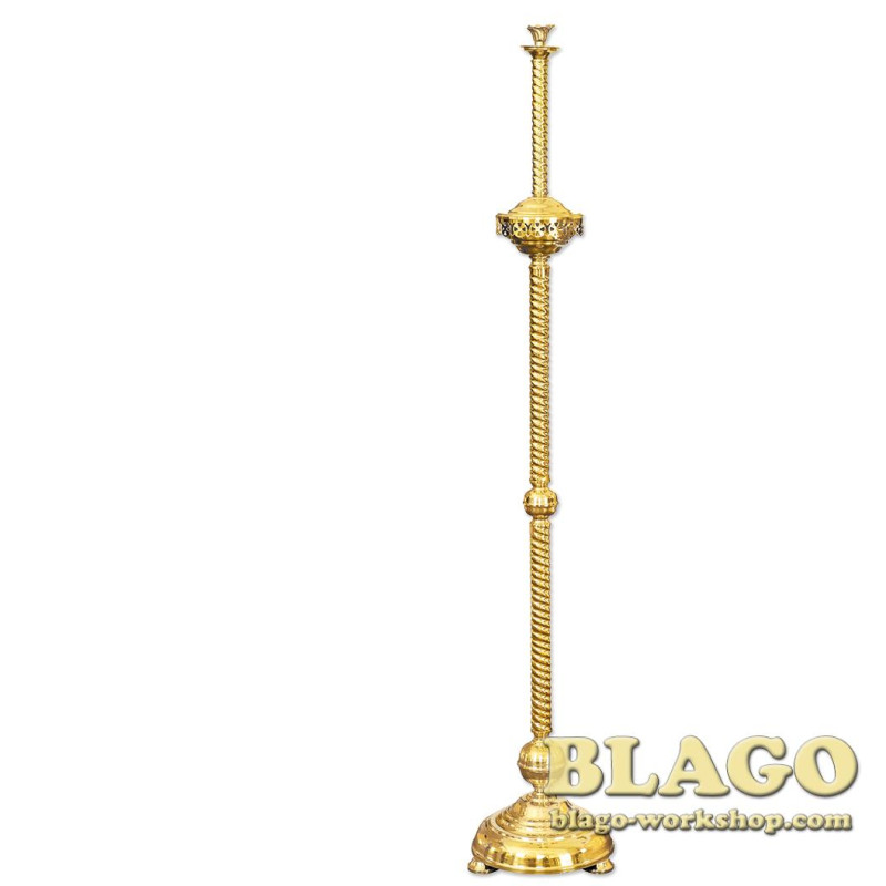 Підсвічник виносний латунний на 1 свічку з литвом та прямою ніжкою, 25х128 см