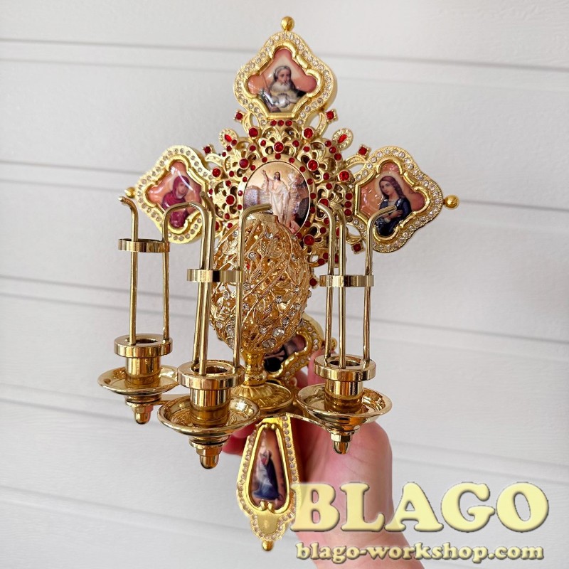 • Особливості: трисвічник оздоблений червоними та білими камінцями і літографією