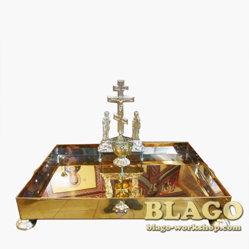 - Материал: металл булат (нержавейка с напылением нитрид титана), лампада и свечодержатели латунь, голгофа и накладки цельное литье