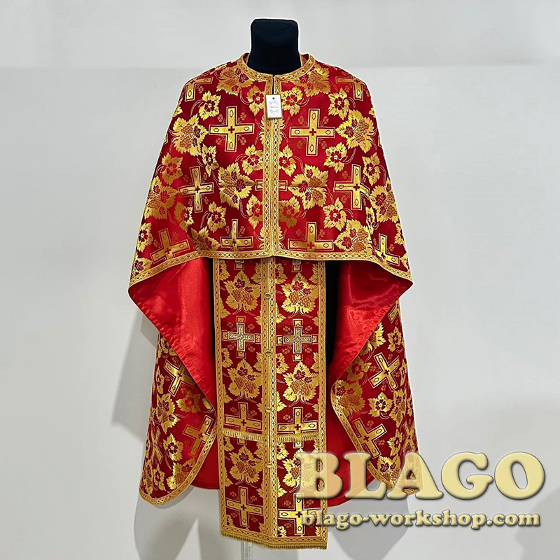 The priest's vestments of red color, Greek cut from brocade (size 48-50) is a luxurious set of church vestments, which is ideal for important religious rites and services.