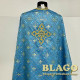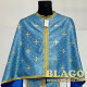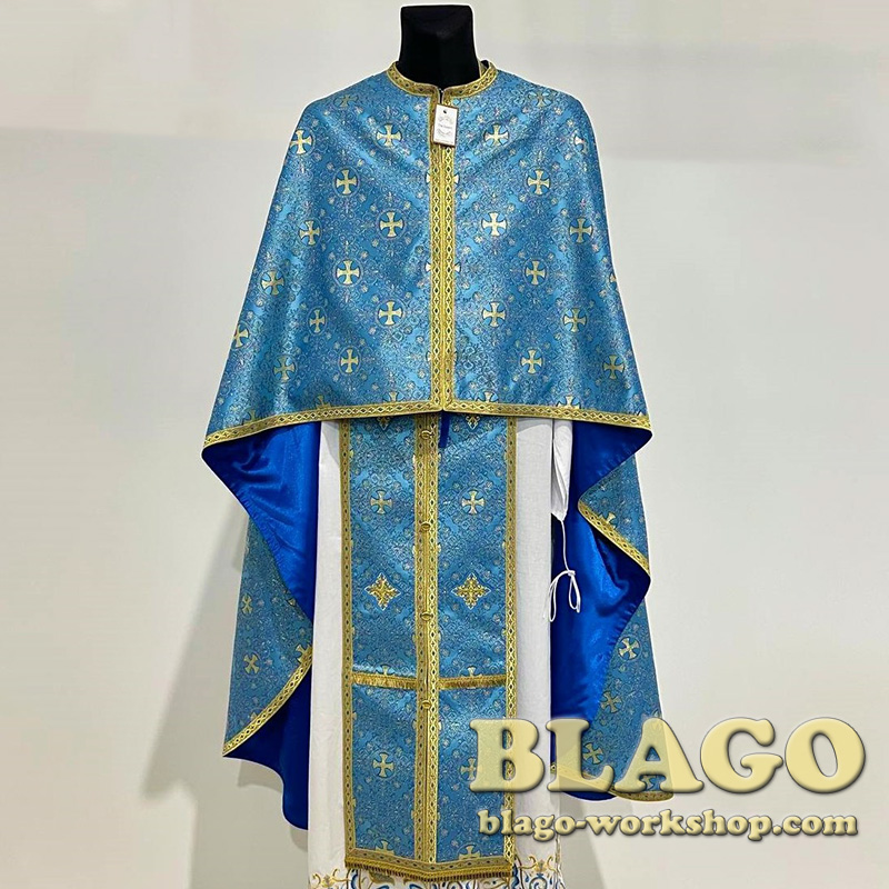 The priest's vestments of blue Greek cut brocade (size 48-50) are a luxurious set of church vestments that are ideal for important religious rites and services.