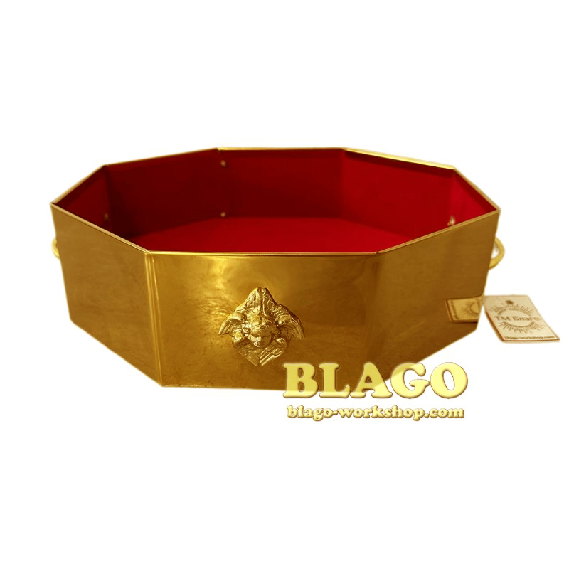• Features: the donation tray is decorated with a cast brass overlay and has two handles.