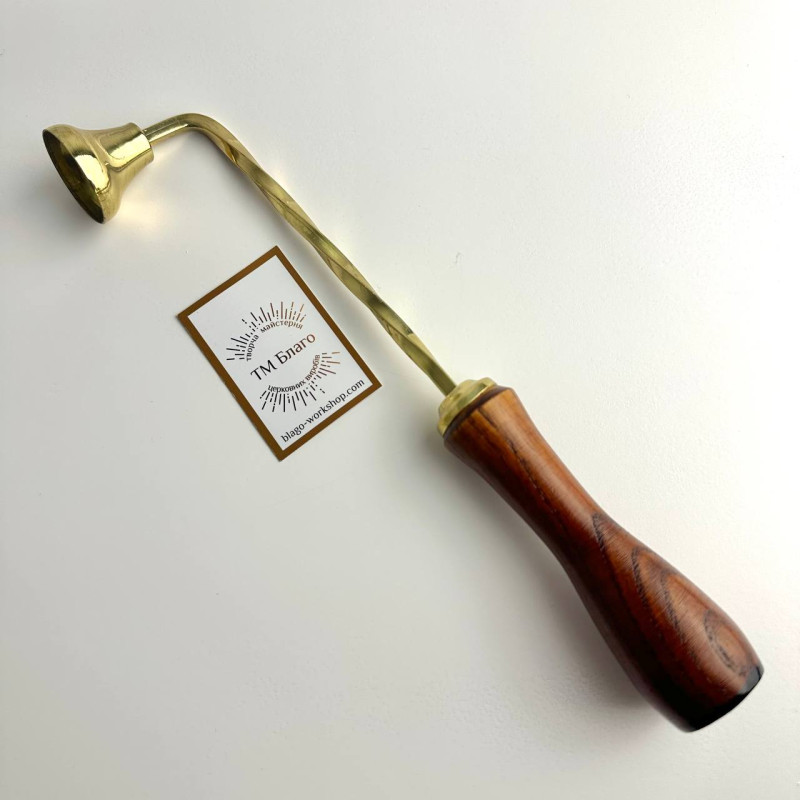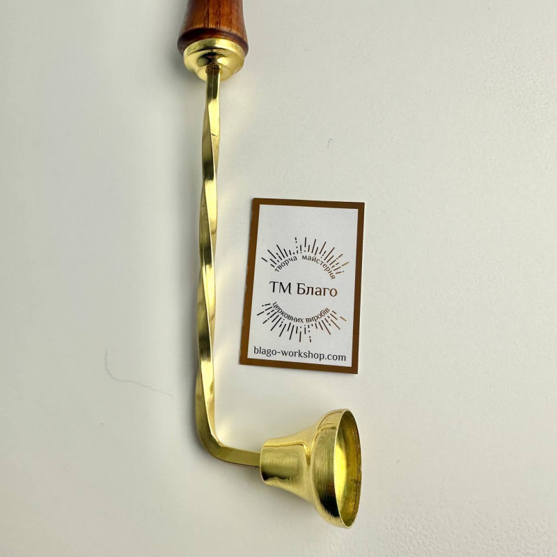 Цей свічегасник виготовлений з високоякісної латуні, що надає йому довговічності та елегантності. Легкий і зручний у використанні, він оснащений дерев'яною ручкою, що забезпечує комфор у використанні.