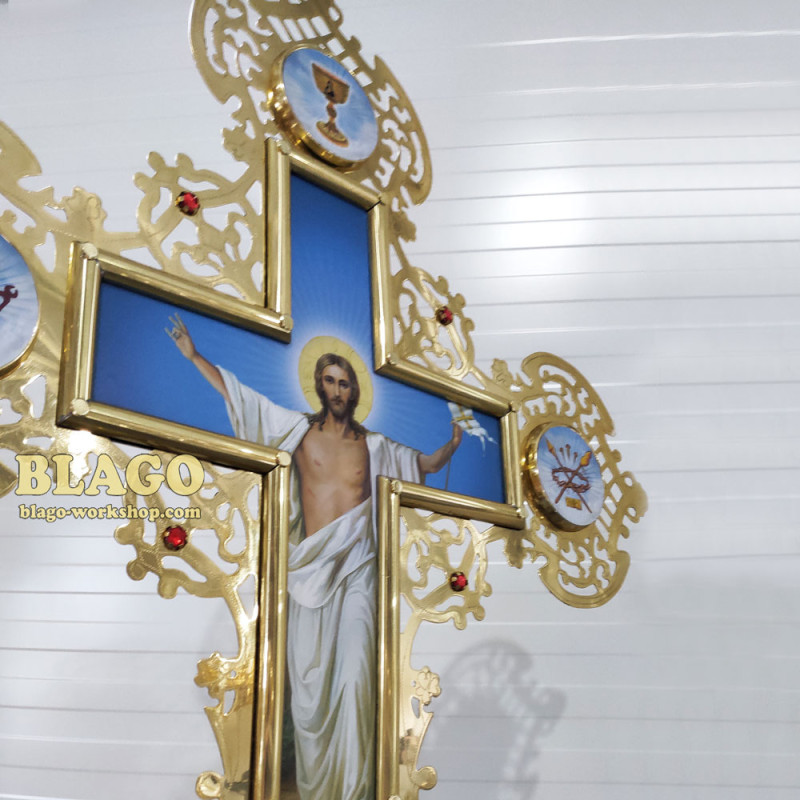 У нашій майстерні ТМ «Благо» є великій вибір Голгоф, Воскресінь, ікон, кіотів, престолів, жертовників, підсвічників, аналоїв, водосвятних чаш, окладів для Євангеліє, лампад, ладану, виробів з кераміки, пошивної та друкованої продукції.