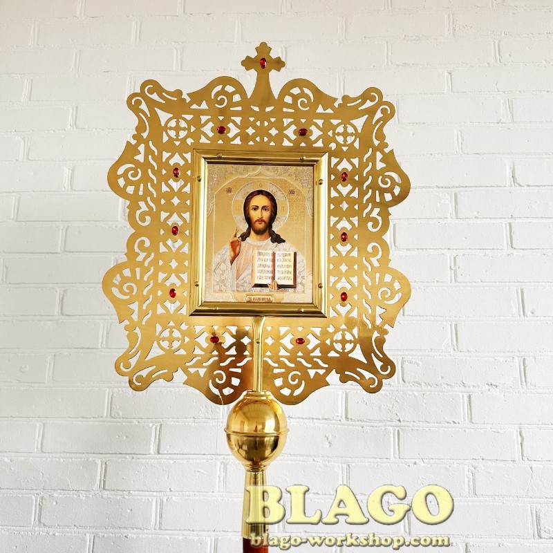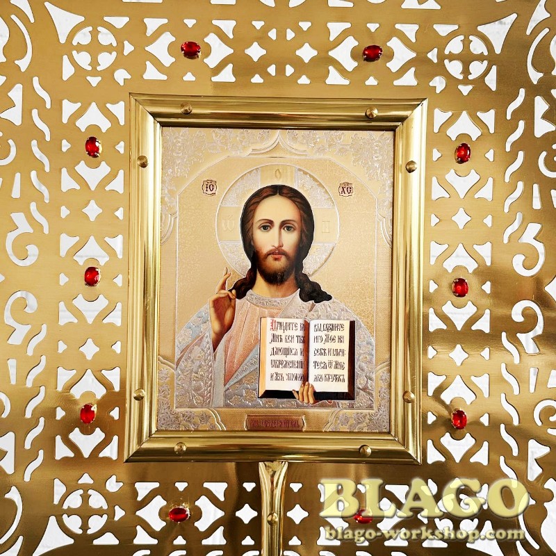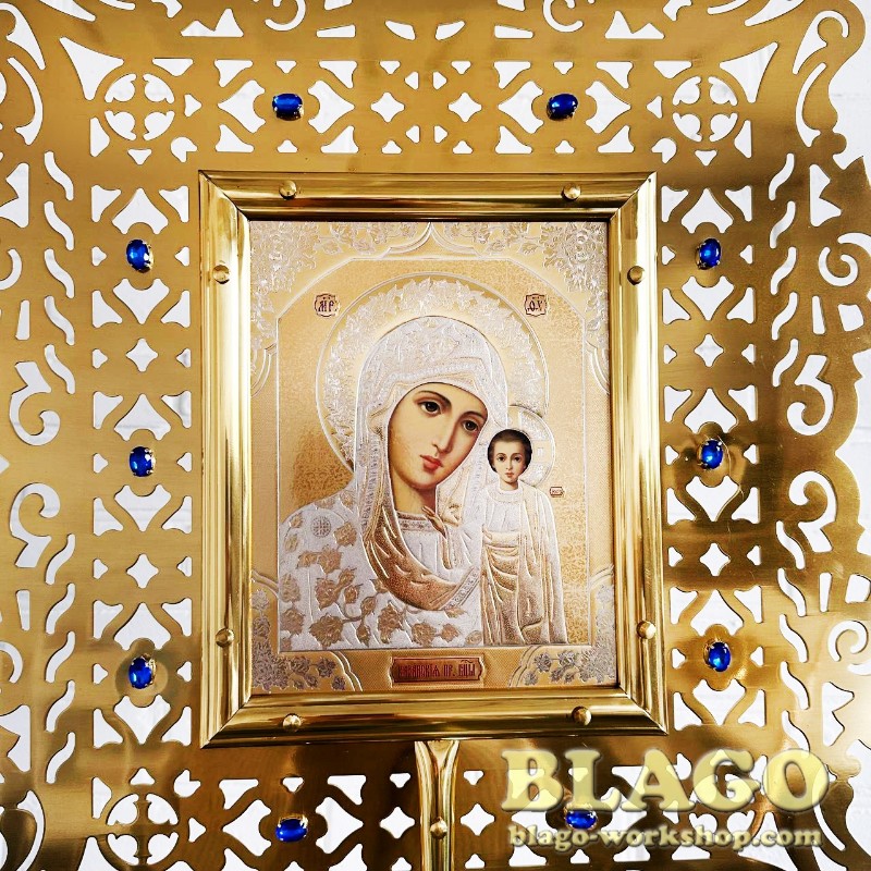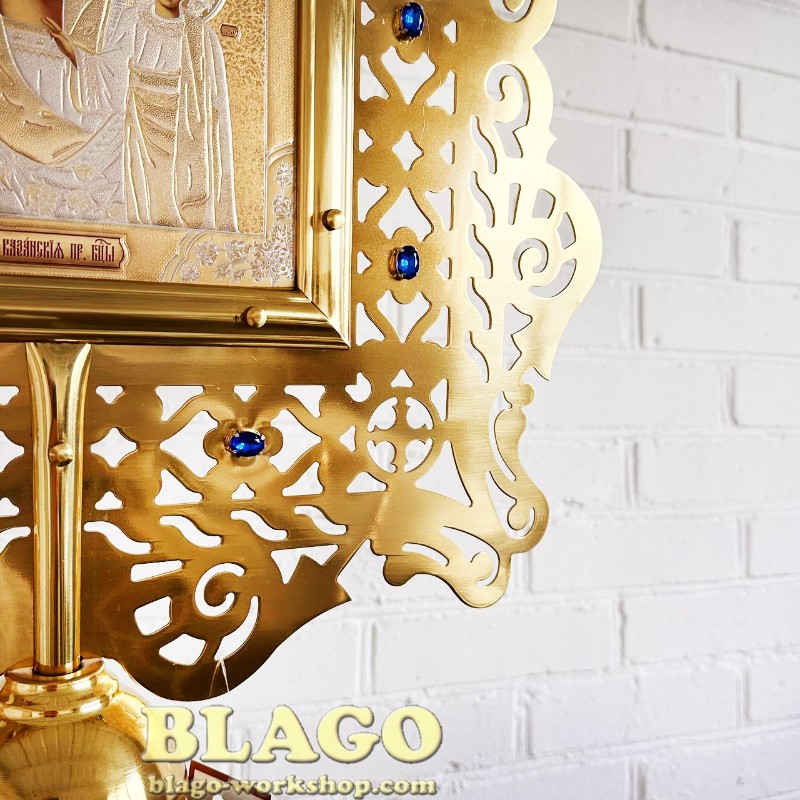 • Особливості: ікона двостороння, оздоблена камінням